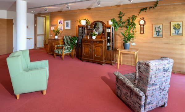 Bei der Gestaltung der Räume haben wir besonderen Wert auf eine gemütliche Atmosphäre gelegt. Teppichböden, Holzvertäfelungen, Textilien in warmen, klaren Farben unterstreichen den wohnlichen Charakter, Pflanzen sorgen für ein gesundes Raumklima. Im Wohnzimmer laden gemütliche Ohrensessel und Sofas zum Entspannen ein und am Spieltisch findet sich schnell Gesellschaft. In der Cafeteria im Erdgeschoss bieten wir auch einen Offenen Mittagstisch an.